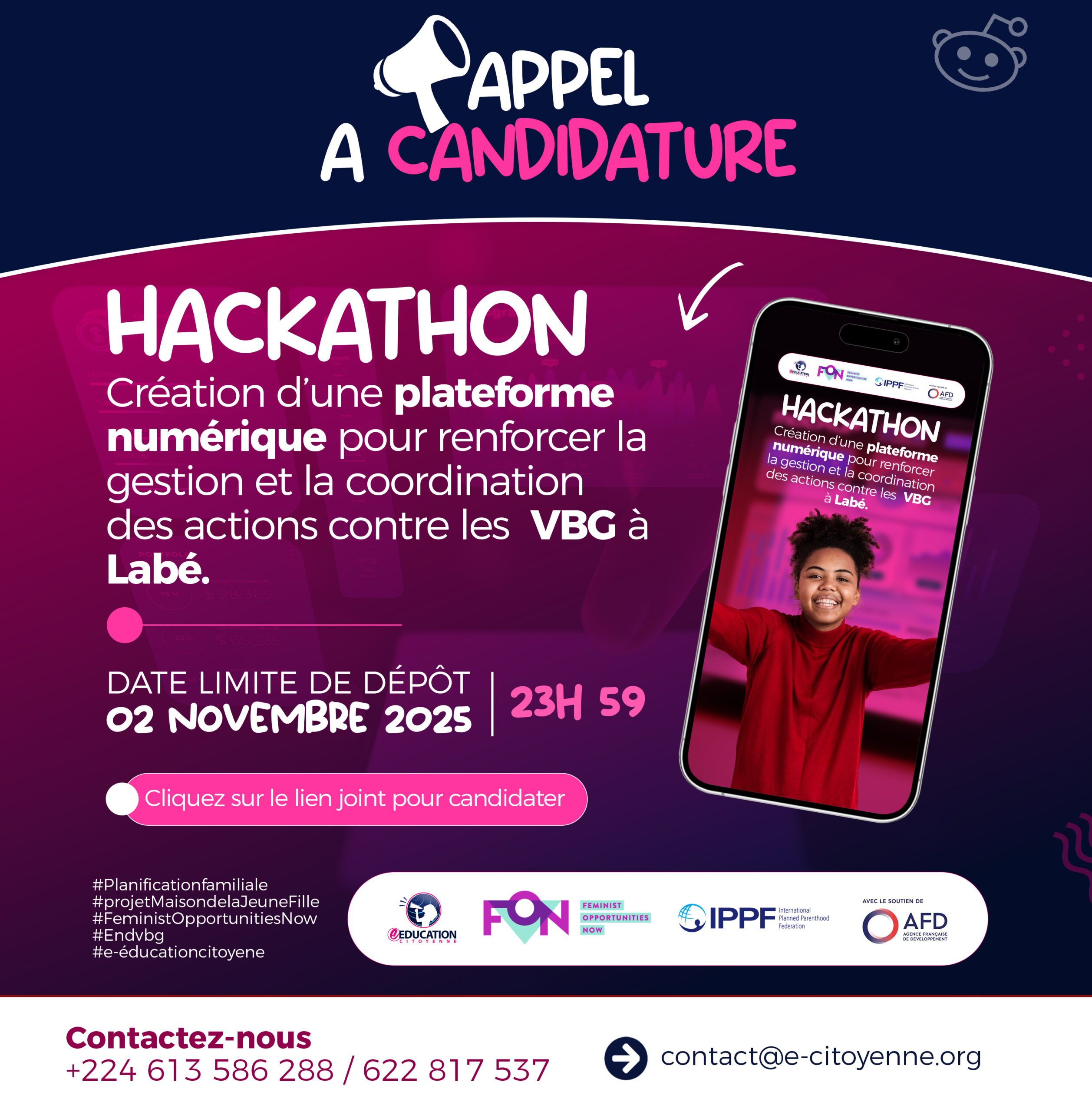 L’ONG E-Éducation Citoyenne, dans le cadre du projet Maison de la Jeune Fille soutenu par le programme Feminist Opportunities Now (FON), lance un appel à candidatures pour un hackathon inédit à Labé.